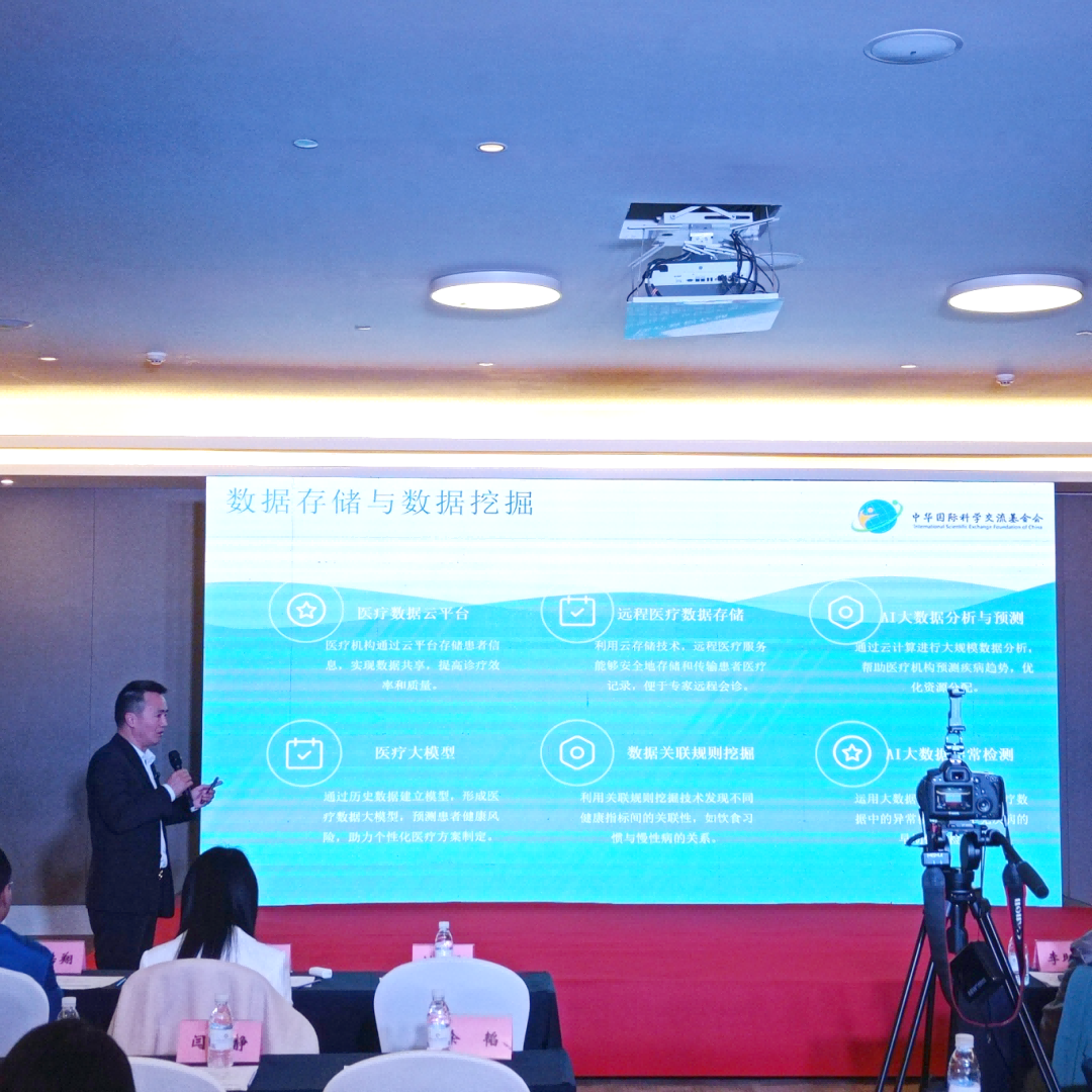 隨后,在尤鋆秘書長的(de)介紹下,王(wang)飛院(yuan)長正式開啟題為《大健康領域-AI大數(shu)據應用與數(shu)據資(zi)產增(zeng)值》的(de)主旨演說。