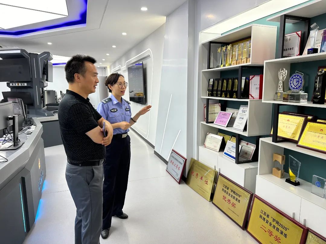 在接待人(ren)員的(de)介紹下,王飛院(yuan)(yuan)長(chang)首先參(can)觀了該(gai)學(xue)院(yuan)(yuan)的(de)介紹墻及(ji)榮譽(yu)室,作為江(jiang)蘇省公安(an)信息(xi)技術(shu)實踐教育中心,該(gai)學(xue)院(yuan)(yuan)通過“教學(xue)研練戰”一體化培養模式(shi)為公安(an)系統(tong)輸送了一批(pi)又一批(pi)的(de)高質量信息(xi)技術(shu)人(ren)才(cai)。