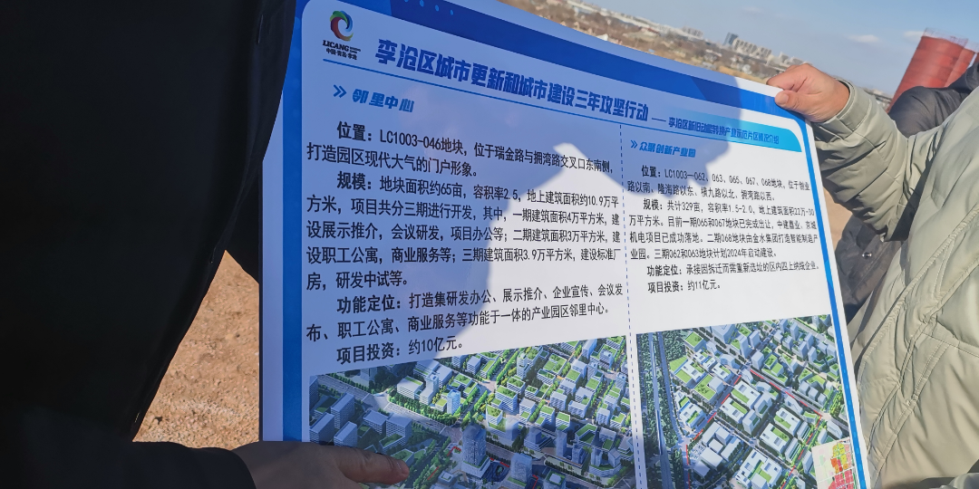 第(di)二站,王飛(fei)院長一行(xing)(xing)來到金水集團承建(jian)的李滄區新(xin)舊動能轉換產(chan)業(ye)(ye)(ye)示范片(pian)區項(xiang)目基(ji)地進(jin)(jin)行(xing)(xing)參觀考察。在現場,王飛(fei)院長仔細聆聽(ting)基(ji)地負(fu)責人對該項(xiang)目整體規(gui)劃(hua)及建(jian)設進(jin)(jin)度的匯(hui)報,并針對產(chan)業(ye)(ye)(ye)規(gui)劃(hua)、空間布局(ju)、配套設備和運(yun)營運(yun)維等方(fang)面進(jin)(jin)行(xing)(xing)詳(xiang)細溝通與交(jiao)流。王飛(fei)院長充分(fen)肯定了(le)該項(xiang)目立(li)足高端制造、新(xin)材料(liao)等實體產(chan)業(ye)(ye)(ye)的經濟定位,并提出了(le)利用(yong)研究(jiu)院的資源(yuan)力量,助力先進(jin)(jin)產(chan)業(ye)(ye)(ye)和人才(cai)資源(yuan)導入的建(jian)議(yi)。