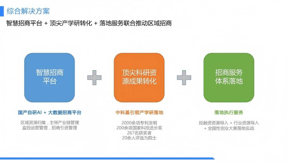 智慧招(zhao)(zhao)商是對傳統招(zhao)(zhao)商模式(shi)的一次重大(da)創新。利用(yong)大(da)數據、云(yun)計算等現(xian)代高科技(ji)手段,全面收集和(he)整合政府、企業和(he)社會各界(jie)的海量數據信(xin)息(xi),展示投資環境、發布政策信(xin)息(xi)、匹(pi)配資源要素(su)、連接項目服務。突破了(le)時間和(he)地域的限制,提高了(le)招(zhao)(zhao)商效率(lv),節省了(le)大(da)量的人(ren)力物力成本。尤其是傳統園(yuan)區(qu)(qu),應當利用(yong)好這一技(ji)術(shu)突破,加強(qiang)園(yuan)區(qu)(qu)企業產業鏈(lian)升級,加強(qiang)自身核心競爭力,同時促進當地經濟增(zeng)長。