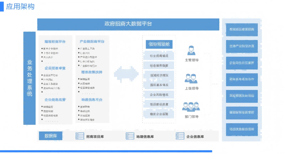 智慧招商綜合系統重點圍繞平(ping)臺定位、應用(yong)架構、技術架(jia)構和數(shu)據架構(gou)四個方面開展。